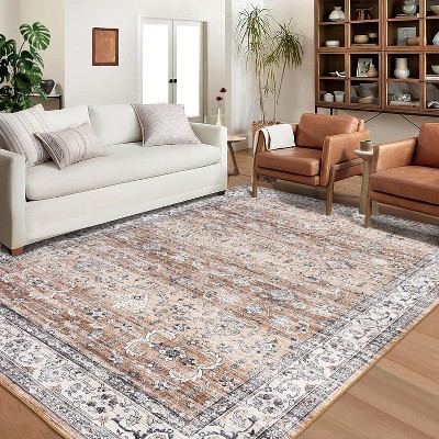 TROPOW 4x6 Rug Tassel Rug Non Slip Rug Low Pile Rug Bordered Rug Stain Resistant Indoor Carpet