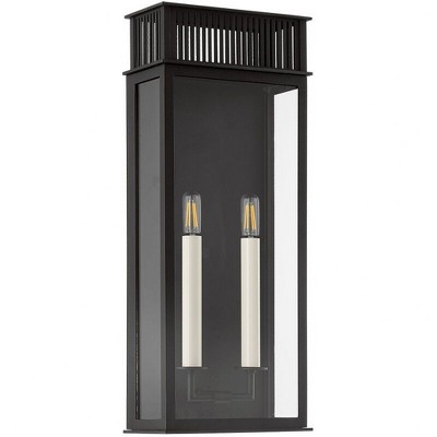 Collection: Amire, Material: Aluminum, Finish Color: Textured Black, Width: 7.25", Height: 16", Length: 7.25", Depth: 5.25", Backplate Width: 6.25", Backplate Length: 4.75", Lamping Type: Incandescent, Number Of Bulbs: 1, Wattage: 18 Watts, Moisture Rating: Wet Rated, Desc: Clean lines, negative space, and a minimal rectangular backplate define the layered frame of the Amire sconce. Within the open, airy silhouette, slender off-white candles are encased by clear glass panels, optimizing illumination. The Textured Black finish brings a sense of modern elegance to any exterior. Amire is available as a 1-light sconce or a 2-light sconce in two sizes.,