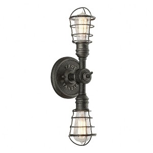 Collection: Conduit, Material: Iron, Finish Color: Old Silver, Width: 6", Height: 19", Depth: 5.75", Height From Outlet Box: 9.5", Backplate Width: 6", Backplate Length: 6", Lamping Type: Incandescent, Number Of Bulbs: 2, Wattage: 100 Watts, Moisture Rating: Dry Rated, Desc: Room Recommendation: Kitchen/Dining Room/Bedroom/Living Room/Entry/Foyer/Hallway/Office / Back Plate Height: 6.00 / Back Plate Width: 6.00. ,