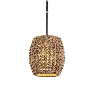 Collection: Conga, Material: Rope, Finish Color: Tidepool Bronze, Width: 12", Height: 21.25", Length: 12", Chain Length: 72", Lamping Type: Incandescent, Number Of Bulbs: 1, Wattage: 60 Watts, Moisture Rating: Dry Rated, Desc: The first thing you'll notice about Conga is its macrame patterns of twisted rope which form a drum shape to match its name. Layered around a central column shade diffusing warm light, this shape adds textural intrigue and a worldly decorative flavor to a variety of spaces. Assembly Required: Yes / Canopy Included: Yes / Canopy Diameter: 6.00 / Chain Length: 72.00 / Shade Included: Yes / Shade Dimensions: 12 x 5.5 x 8 x 12.75. ,