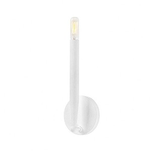 Collection: Levi, Material: Steel, Finish Color: Gesso White, Width: 4.5", Height: 13.5", Depth: 2.5", Lamping Type: Incandescent, Number Of Bulbs: 1, Wattage: 25 Watts, Moisture Rating: Damp Rated, Desc: The tapered candlestick holder, round backplate and exposed bulb make this straightforward wall sconce instantly recognizable and extremely usable. The monochromatic, textured finishes in Gold Leaf, Forged Iron and Gesso White make a natural, modern statement. Place Levi throughout the home, including the bath and powder room.,