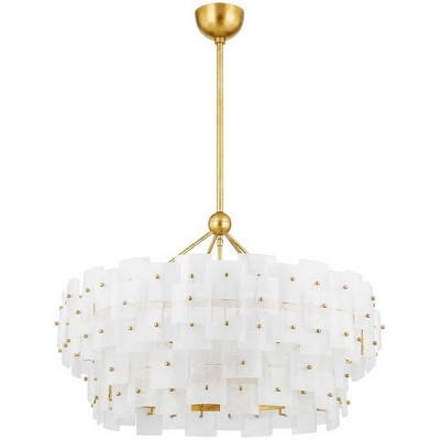 Collection: Osmond, Material: Steel, Finish Color: Vintage Gold Leaf, Width: 36", Height: 23.5", Lamping Type: Incandescent, Number Of Bulbs: 5, Wattage: 60 Watts, Moisture Rating: Damp Rated, Desc: The traditional slender arm, candlestick, drum shade combination is updated by heavily textured, gorgeous metalwork and a beautiful teardrop dangle accent that elongates the silhouette. The Vintage Gold Leaf finish enhances the design's feminine feel and the Black Iron brings an edgier look.,