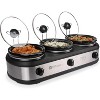 [This review was collected as part of a promotion.] I can’t say enough great things about this triple slow cooker! It’s truly one of a kind. The oval space-saving crocks are easy to remove and clean. There is a built in stand to hold the lids which is awesome because not only is it handy but it’s way less messy. The lids also have a slat in them to hold serving spoons which conveniently come with the product! I like that each cooker has its own heating function so you can have the crocks at different temps for various food items. If you know someone who enjoys hosting, this is the perfect gift!!