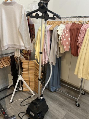 Built with safety in mind, Smart Auto-Off Technology powers the unit down when the water runs out, while a water detection sensor alerts you with a blinking blue light and a helpful beep. Designed for convenience, it features smooth-rolling wheels, a retractable telescopic support bar for easy storage, and a hands-free hanger that securely holds a variety of garments while you steam."