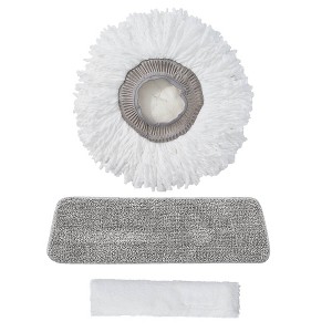 The True & Tidy 3-Piece Replacement Set is designed for use with the True & Tidy SPRAY-360 Clean Everywhere Spray Mop Kit. Each set includes 1 round mop pad, 1 flat microfiber mop pad, and 1 squeegee microfiber replacement. The replacement pads securely attach to the True & Tidy SPRAY-360 and are easy to remove for washing. The pads are machine washable, non-abrasive and easy to use and replace. Our durable microfiber material is safe to use on wood, vinyl, laminate, marble, tile and more. The MP-360 is compatible with True & Tidy SPRAY-360 spray mop kit (Spray Mop Kit sold separately).