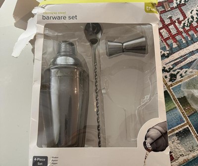 True 4-Piece Barware Set, Cobbler Shaker with Cap and Strainer, Double Jigger, Muddler, Bar Spoon, Corkscrew, Cocktail Kit, Stainless Steel