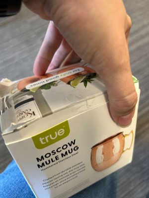 True Moscow Mule Mug – 16 oz Hammered Polished Copper Plated Stainless Steel with Brass Handle – For Moscow Mules and cocktails, 16 Oz, Set of 1