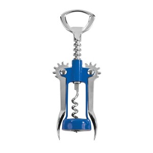 - WINGED WINE BOTTLE OPENER – This blue and silver winged corkscrew with self-centering worm and built-in bottle opener makes wine service a breeze. Never struggle with unwieldy wine keys again. Perfect for dinner parties or cocktail hour!