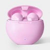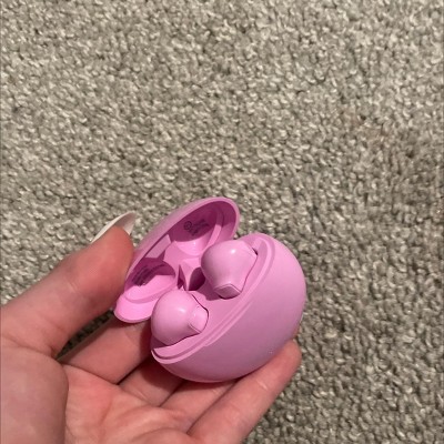 - Bluetooth-enabled True Wireless earbuds in a bright lilac color