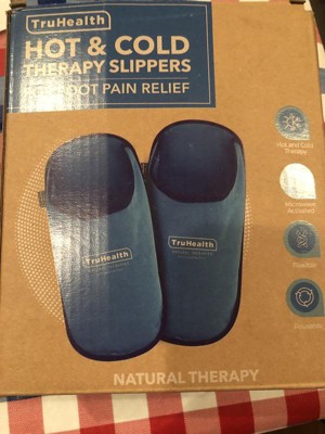 [This review was collected as part of a promotion.] I got the Tru Health Ice Pack Slippers because im on my feet 12 hours out of the day working, so by the time I get home my feet is sore and achy. The nice thing about the ice pack slippers is there for hot and cold. Yep thats right you can freeze it or heat it up for a warm pack. The ice pack slippers are a great addition to add to the medicine cabinet I would highly recommend this to anyone with feet problems or a broken foot or something like that. The TruHealth Hot and Cold Therapy Slippers are flexible, reusable, and microwave activated. They also have a nice non slip backing so you don't slip and fall. They are very durable and heavy duty nice. I love em and you will too.