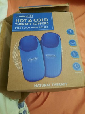 [This review was collected as part of a promotion.] TruHealth Ice Pack Hot and cold slippers for foot therapy, my daily routine is very heavy I have a lot of activity with my children and I end up with foot pain, these slippers have helped me a lot they help me rest my feet for me it has worked more when hot, my feet feel better than when cold, they are very practical for use in the microwave, it is only heated for 30 seconds and cold use is to leave at least an hour in the refrigerator, they are not heavy and are very comfortable, the material is resistant.