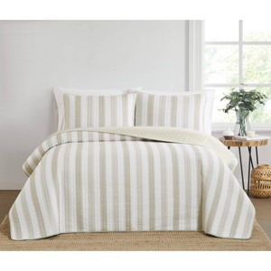 Truly Soft 3pc King Aiden Striped Quilt Set Beige