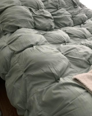 Experience the light and airy feeling of a cloud, combining the insulated comfort of a puffer jacket with our Cloud Puffer Comforter Set by Truly Soft. The microfiber fabric is extremely soft and stitched with a gentle kissing pleat technique to offer loft and intrigue to the solid colored fabric. Luxuriously overfilled, a 300 grams per square meter polyester fill is added within the comforter to provide the cloud-like feel and complete the puffed design. The sham(s) have a solid face with a 2-inch flange that brings focus back to this stunning comforter. This comforter set is available in a variety of subtle and trendy colors, white, grey, beige and green. Fabric is a pleated 100% microfiber with a 90 GSM. Filled with 100% polyester and a fill weight of 300 GSM. This item is machine washable, but please be sure to use appropriate sized machinery to avoid any excess wear on the items. This item is manufactured and imported from China. Set includes: one comforter 68 inches wide by 90 inches long with one standard sham 26 inches wide by 20 inches tall.