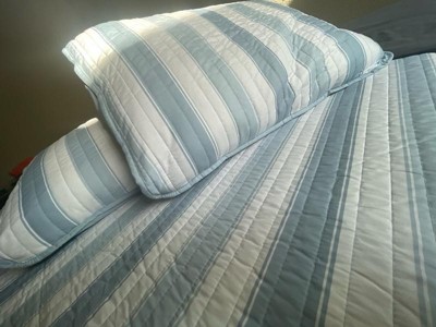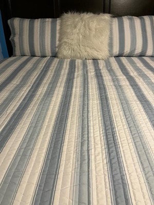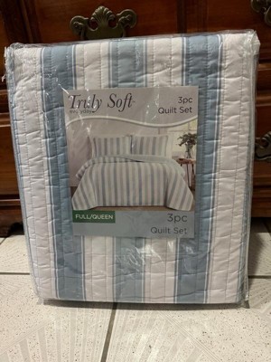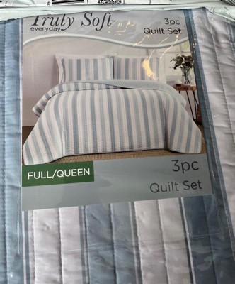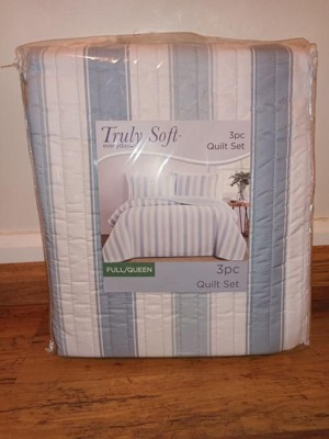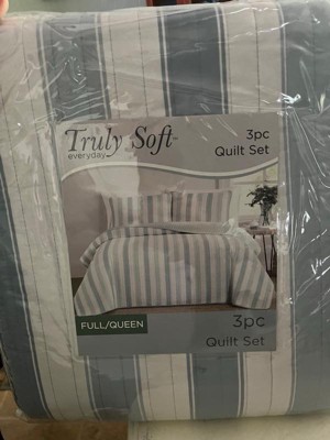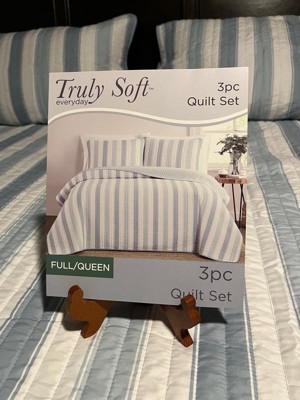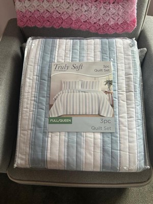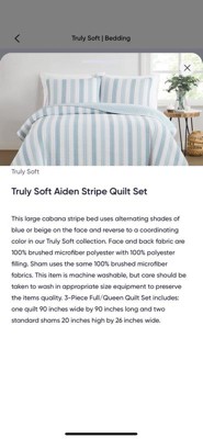 [This review was collected as part of a promotion.] This Truly Soft Aiden Stripe 3pc Quilt Set is so adorable! It’s quaint and it’s cute! it’s very soft. The company name definitely fits because it is truly soft ! It fits my queen size bed beautifully. The material feels amazing and it sleeps so comfortably ! I love the stripes and the baby blue and I love that it is reversible! It’s the perfect weight. It’s not too hot or smothering but keeps you warm at the same time. It’s not a hot heavy material and it’s just an all-around great quilt set! I definitely recommend Truly Soft bedding!