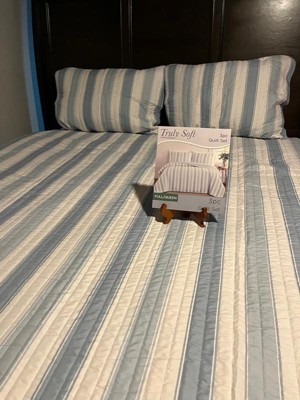 [This review was collected as part of a promotion.] "The Truly Soft Aiden Stripe Quilt Set is a cozy addition to any bedroom. Its soft fabric feels luxurious against the skin, and the timeless stripe design adds a touch of elegance to the room. The set includes everything you need for a stylish bed makeover, and the quality craftsmanship ensures durability for years to come. Overall, a fantastic choice for both comfort and style."