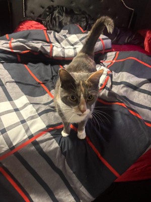 [This review was collected as part of a promotion.] My cat immediately run to snuggle up to the comforter. It is a lighter comforter which is good for warmer weather or to layer with other blankets. I wish the designs were better, but it’s a good light comforter and I would recommend it