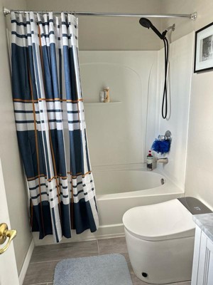[This review was collected as part of a promotion.] This shower curtain is good quality, it is soft , doesn’t leak. The size is perfect for small bathrooms. If you are looking for longer shower curtain this is not right for your bathroom. This size is 72inch x 72in. And it was fine in one of my kids bathrooms, I used to have longer shower curtain so I had to adjust a rod to fit this one. In general fits to my son’s bathroom. Can be washable in the washer machine, I used gentle circle to prevent shower curtain from tearing. It fits the my son’s bathroom color set.