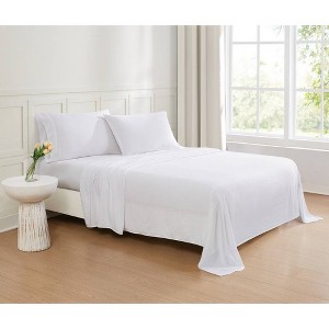 Discover unparalleled softness with our special fabric, offering an exceptionally smooth feel from the moment you unwrap them. Includes: one flat sheet 108 inches wide by 102 inches long, two fitted sheets 39 by 80 inches with a 15 inch pocket to fit up to a 18 inch mattress, two king pillowcases 20 by 40 inches. The fabric is 100% microfiber polyester which has been garment washed for extra softness and a relaxed look.