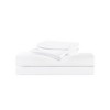 Show your commitment to the planet while enjoying the luxurious softness of our solid color recycled bedding collection. Includes: one flat sheet 66 wide by 96 inches long with one fitted sheet 39 by 75 inches with a 15 inch pocket to fit up to an 18 inch mattress, and one standard pillowcase 20 by 32 inches. The fabric is 100% recycled microfiber polyester in a percale weave.