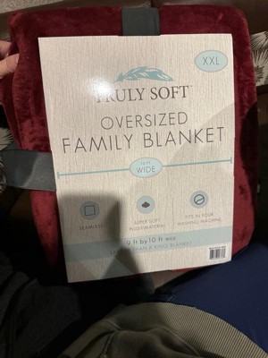 [This review was collected as part of a promotion.] This blanket is my family's new favorite to use. It's an over sized plushy blanket that is very soft. It's so big it can comfortably fit my family of 4 on our movie nights! I have the burgundy color as pictured. I'm absolutely in love with it!