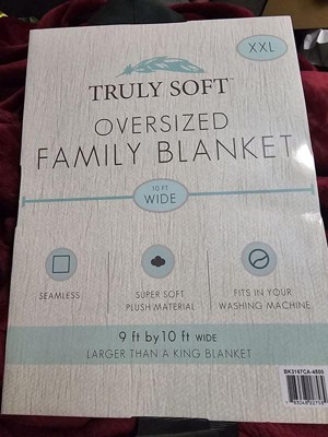 Now you can cuddle up with the entire family or friends with this extra-large 10 foot in length by 9 foot in width blanket. While other blankets are pieces sewn together, our Truly Soft blanket is one continuous piece, eliminating any uncomfortable seams and leaving one jumbo velvety plush blanket. This blanket is so versatile where it is perfect for a movie night on the couch and outdoors on another night. This plush fabric is durable and easy care with being machine washable. Available in an assortment of colors for you to choose from.Includes one family blanket (110"W x 120"L)