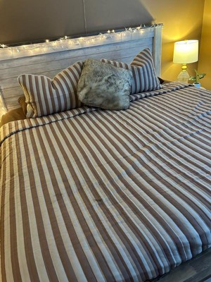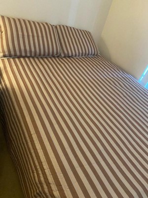 [This review was collected as part of a promotion.] Shipped very quickly. I got the brown striped queen comforter. It fits the bed very nicely and is very comfortable. I like how it’s more neutral colors so it will go with a lot