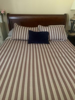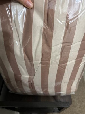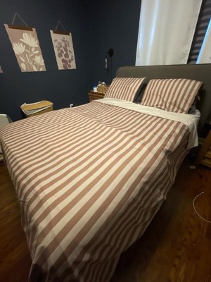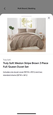 [This review was collected as part of a promotion.] I am loving this duvet set! I’m obsessed with the brown stripes. They are a fun addition to our room but still a bit neutral. These set is very soft and is 100% polyester. It comes with one duvet and 2 shams. Fits my queen bed perfectly.