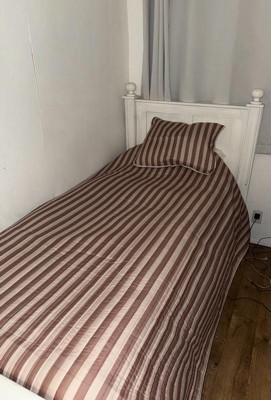 [This review was collected as part of a promotion.] This is such a great quilt! It’s not too thick but not too thin. I was looking for a quilt and this one fit perfectly on the twin bed in the guest bedroom. The color was a surprise, it’s a very dark brown color despite it looking more nude on the product image. What I like the most is the texture, it’s not rough at all!