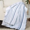 - LEVTEX TRURO QUILTED THROW: This quilted throw features a versatile blue stripe pattern. Perfectly sized at 50x60in., the Truro throw is so versatile. Drape it at the end of your bed or on your favorite, cozy chair; snuggle up with it in front of a fire in winter; or throw it over you just as the sun goes down as you enjoy a cool Spring or Summer evening outdoors.