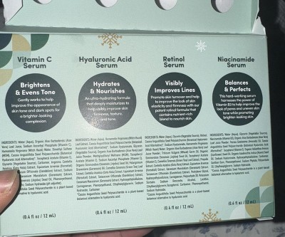 I purchased this product because I use the brand and never had a problem but I never bought the small gift set before but the retinol and niacinamide serum both looked used. They had the plastic on it but the bottles were not full. I peeled sticker back to show the bottle I want my money back