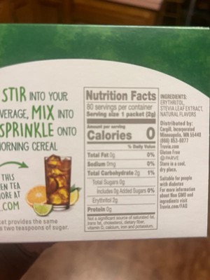 [This review was collected as part of a promotion.] Love this trivia sweetener for my offer or any of our sweetening needs. We have only used the packets which makes it easy for drinks like this. There is no scooping or measuring and no nasty aftertaste!