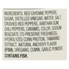 cayenne peppers, sugar, distilled vinegar, water, salt, crushed red peppers, xanthan gum, chili peppers, caramel color, sodium benzoate (to preserve freshness), hydrolyzed corn protein, tamarind extract, natural flavor (contains anchovy), oregano, cumin, garlic powder' '