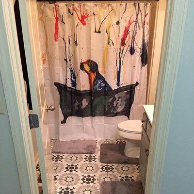 Tub Dog Shower Curtain White - Allure Home Creations: Polyester Fabric, Animal Pattern, Bathroom Decor