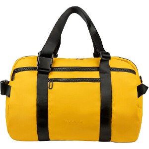 The yellow Gommo Weekender Bag/Backpack from Tucano is an ideal choice for carrying on long trips or your everyday commutes. This bag can be used as either a backpack or you can carry it like a duffle bag thanks to the double Fastex system. The Fastex system allows you to easily convert the bag's top handles into shoulder straps. You can also carry your bag with the removable shoulder strap. This bag has a large internal compartment and multiple external, zippered pockets for enhanced organization of your items. Weekender bag in rubberized material that can be used as a holdall or as a backpack, thanks to the double Fastex system that transforms the handles into shoulder straps. With its spacious internal compartment and the excellent organization of the external pockets, the weekender bag is useful at the gym, while traveling or on your commute. Comes with a removable shoulder strap.