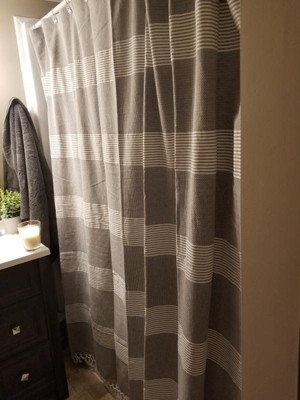 Add subtle texture to your home with the Lush Decor Tucker Stripe Yarn Dyed Cotton Blend Tassel Shower Curtain. Woven with a neutral horizontal pinstripe pattern and adorned with knotted tassels on the bottom for added dimension. The pinstripes bring layers of dimension to this farmhouse inspired curtain. The 2.5 inch tassels hang at the bottom with small knotted detailing giving a more laid back feel. Turn your primary or guest bathroom into a spa-like experience with this calming, striped shower curtain. It easily blends with a coastal or modern farmhouse styled bathroom. Installation is easy with 12 button holes at the top to hang with shower hooks or rings. Pair this fabric shower curtain with a liner, sold separately. To care for this bathroom curtain, we recommend to dry clean only.