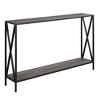 The Tucson Console Table with Shelf by Breighton Home is a beautifully versatile piece, merging farmhouse charm with modern, industrial style. Designed to fit seamlessly into any space, it serves as an ideal entryway table, hall table, sofa couch table, or classic console table. This adaptable piece offers a spacious tabletop for displaying treasured decor or storing everyday essentials, while the additional bottom shelf provides even more room for books, baskets, or decorative accents. Crafted with a sturdy, powder-coated metal frame, this table ensures durability and stability, while the manufactured wood shelves come in a variety of gorgeous finishes to suit any interior. The table is quick to assemble and includes anti-tip hardware for added safety. With its blend of rustic charm and modern appeal, the Tucson Console Table with Shelf is both functional and eye-catching, perfect for completing a cozy farmhouse-inspired space. Pair this chic piece with coordinating pieces from the Tucson Collection, each sold separately.