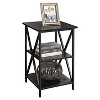 Give your space a stylish upgrade with the Tucson 3 Tier End Table by Breighton Home. This charming accent table blends a classic look with a contemporary design. Boasting clean lines paired with X side framework constructed from powder coated metal. Featuring three tiers of open shelving which provide plenty of space for decor or accessible storage. Place this table on either side of the sofa for a comfortable seating dynamic or between two chairs for a pleasant conversation nook. Look for other items from the Tucson Collection by Breighton Home, each sold separately.