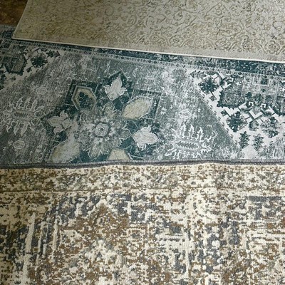 Transform your living space with this exquisite accent rug in a soft beige and grey palette. Measuring 2 feet 6 inches by 4 feet, this delicately woven masterpiece showcases traditional Oriental patterns, adding a touch of timeless charm to any room. Crafted using modern power loomed techniques, it boasts a durable polyester pile and a practical 1/8 inch height. This rug is not only visually stunning but also functional, offering slip resistant and washable features for effortless maintenance. Made in China, this rug combines elegance and practicality, making it a perfect choice for your home decor needs.