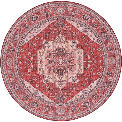Tucson Vintage TSN106 Machine Washable Skid & Stain Resistant Non-Shedding Power Loomed Indoor Area Rug - Burgundy/Beige - 6' Round - Safavieh