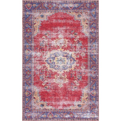 Tucson Vintage Persian TSN107 Machine Washable Skid & Stain Resistant Non-Shedding Power Loomed Indoor Area Rug - Red/Beige - 5'x8' - Safavieh
