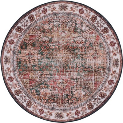 Tucson Vintage Persian TSN113 Machine Washable Skid & Stain Resistant Non-Shedding Power Loomed Indoor Area Rug - Ivory/Red - 6' Round - Safavieh