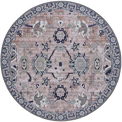 Tucson Vintage TSN118 Machine Washable Skid & Stain Resistant Non-Shedding Power Loomed Indoor Area Rug - Light Blue/Blue - 6' Round - Safavieh