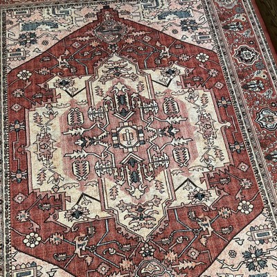We purchased this rug for our kids playroom/tv room, so we needed a durable rug. When I saw it was washable, beautiful, and pretty inexpensive I decided to purchase it. When I received it the first thing I noticed was the size. IT IS NOT 8x10 FEET! It is 7’9” x almost 10’. This is why I knocked off a star. I had already purchased an 8x10 rug pad, so I had to cut it. Besides that, the rug is beautiful. The colors are vibrant and just what I wanted. It is SO SOFT. Not anything like a regular rug. There are no grooves or weaves. The texture is just smooth all the way across. Perfect for my babies to crawl around on. I recommend purchasing a thick rug pad as it is thin.