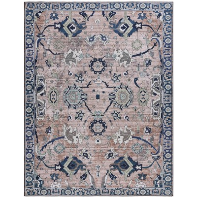 Tucson Vintage Persian TSN149 Machine Washable Skid & Stain Resistant Non-Shedding Power Loomed Indoor Area Rug - Light Blue/Navy - 5'x8' - Safavieh