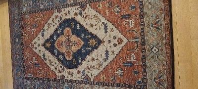 Embracing the essence of traditional style, the rug showcases a stunning pattern with eye-catching rust and blue hues that bring warmth and character to your space. The intricate design includes geometric shapes and floral motifs that resonate with classic elegance and aesthetic appeal.