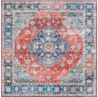 Complete your home with this versatile piece that masters the art of understated elegance. Whether in a cozy living room, a welcoming entryway, or under a dining table, let this blue and rust square area rug anchor your furnishings and elevate your interior design effortlessly.