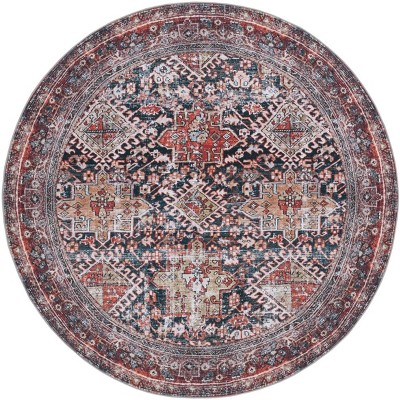 Tucson Vintage Persian TSN124 Machine Washable Skid & Stain Resistant Non-Shedding Power Loomed Indoor Area Rug - Navy/Rust - 8' Round - Safavieh