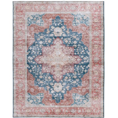 Tucson Vintage Persian TSN182 Machine Washable Skid & Stain Resistant Non-Shedding Power Loomed Indoor Area Rug - Red/Navy - 8'x10' - Safavieh