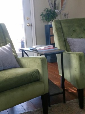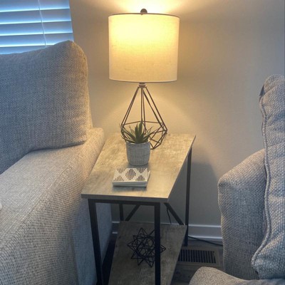 Give your space a makeover with the Tucson Wedge End Table with Shelf. This piece allows you to create usable space between two chairs with its unique wedge shape. Featuring a bottom shelf for additional storage paired with open concept styling this piece is practical and stylish. Constructed with a powder coated metal frame the Tucson Wedge End Table with Shelf will provide the durability and stability you need. Available in multiple finishes this contemporary end table will easily complement any new or existing decor. Look for other items from the Tucson Collection available sold separately.