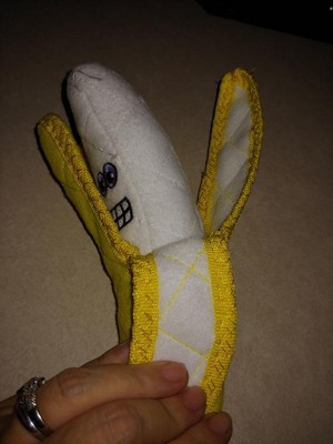 This is the second one of these we’ve bought because we love it so much! The first one lasted for so long, despite lots of abuse. The smiling face on the banana always cracks us up. It’s great because it’s two durable toys in one. Highly recommended!